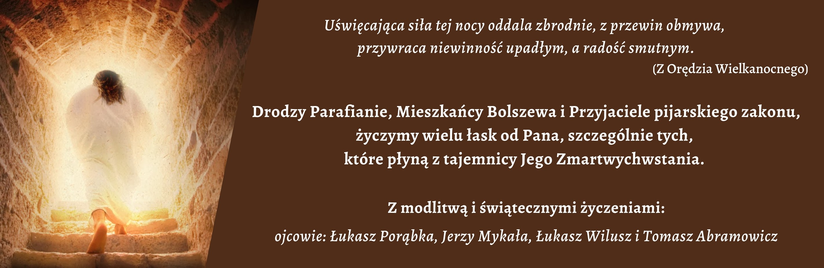 17. Wszystkim Parafianom i wiernym modlącym się w naszym kościele życzymy Bożego błogosławieństwa i dobrego przygotowania się na Święta Zmartwychwstania Pańskiego.