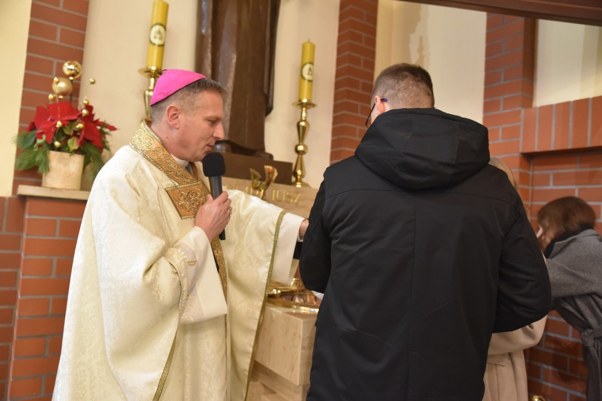 W niedzielę Chrztu Pańskiego, 11 stycznia, gościliśmy w naszej parafii ks. bpa Piotra Przyborka. Podczas uroczystej Eucharystii Ksiądz Biskup poświęcił nową chrzcielnicę, a następnie udzielił sakramentu chrztu świętego siedmiorgu dzieciom.