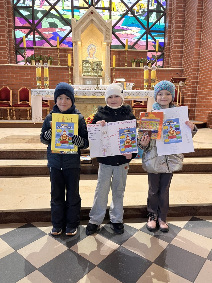 Zakończyliśmy rekolekcje wielkopostne dla dzieci naszej parafii, które trwały od 16 do 20 lutego. W tym roku spotkania rekolekcyjne prowadziły siostry pijarki: Monika i Joanna. Podczas nauk rekolekcyjnych Siostry pokazywały nam, że Jezus dla każdego ma dobrą wiadomość.
