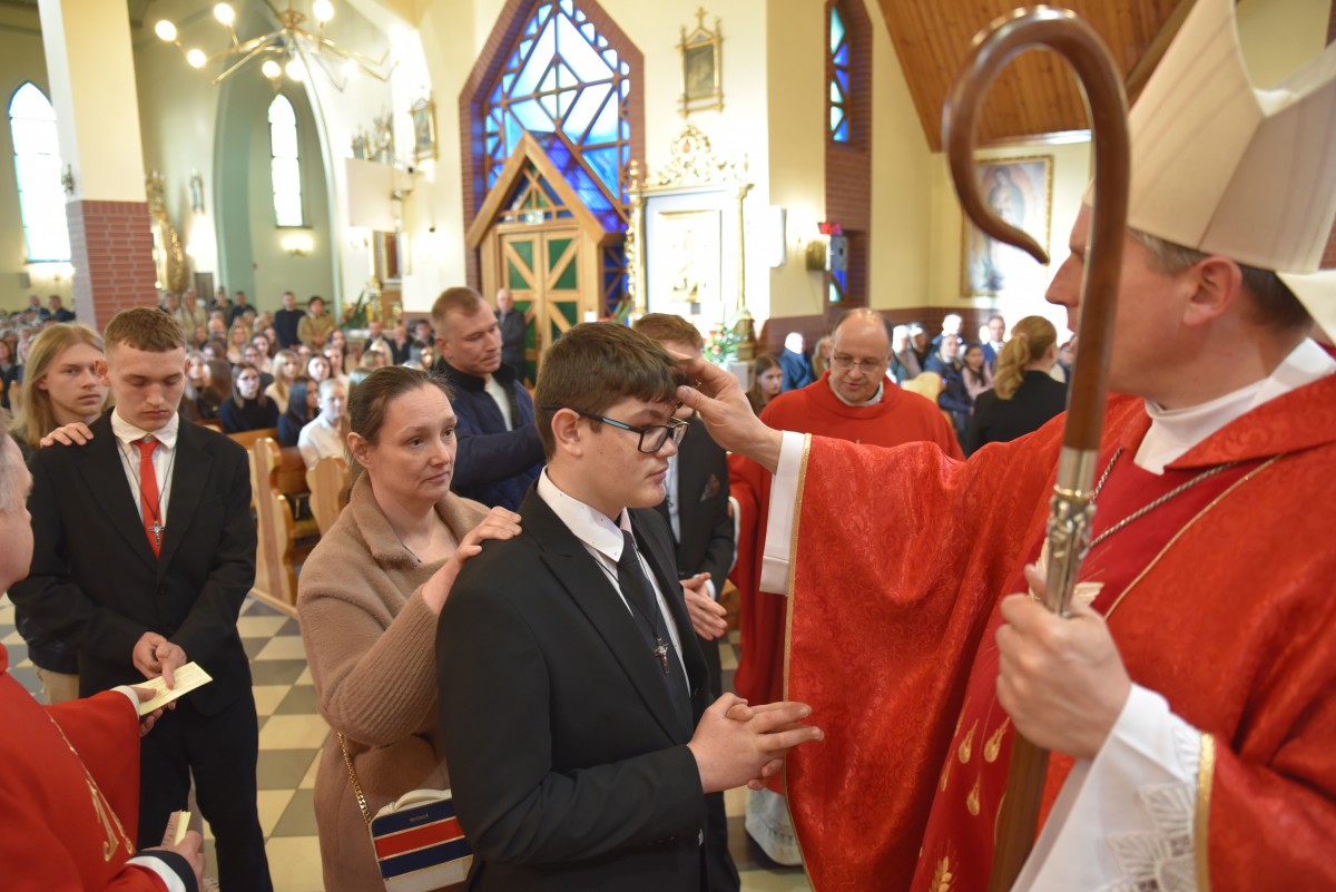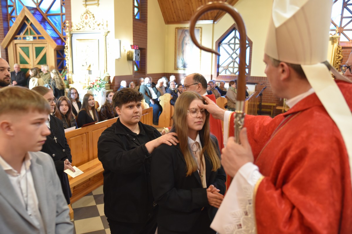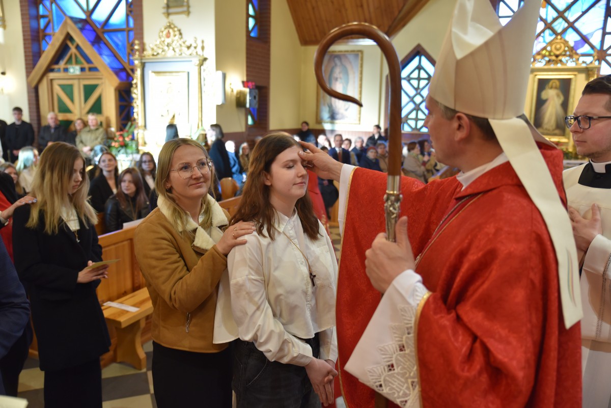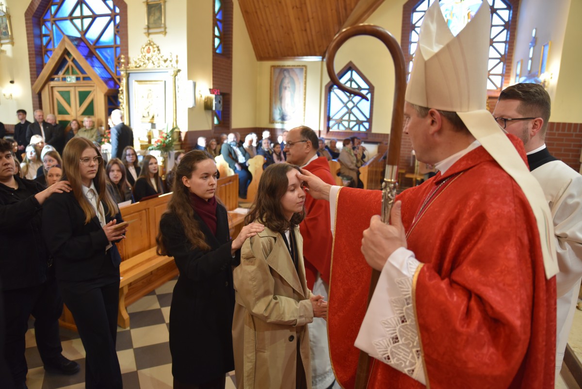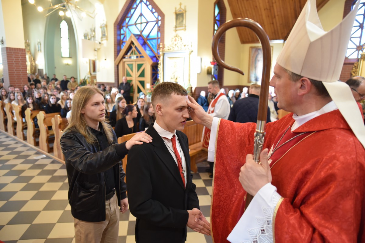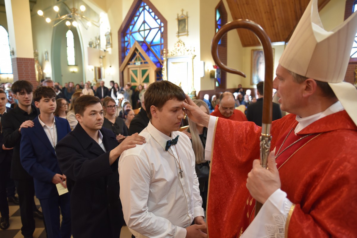 W homilii biskup Piotr zachęcał młodych do życia w bliskiej relacji z Jezusem. Podkreślił, że prawdziwa wiara powinna być widoczna w postawie, wyborach i podejściu do drugiego. Po liturgii słowa i homilii nastąpiło odnowienie przyrzeczeń chrzcielnych, modlitwa nad kandydatami oraz sam obrzęd namaszczenia olejem krzyżma świętego.