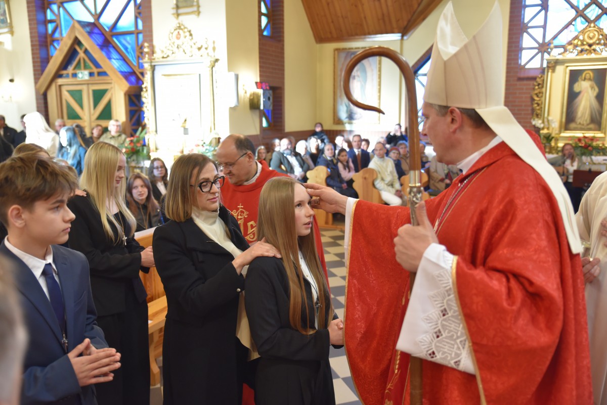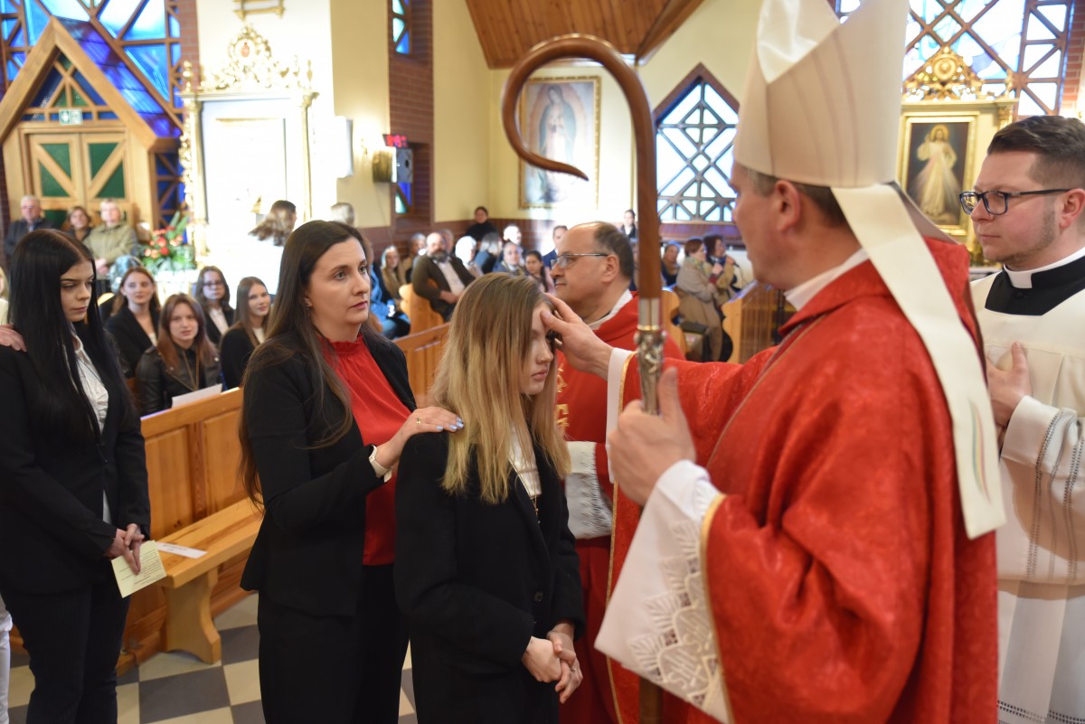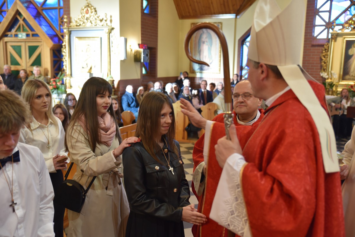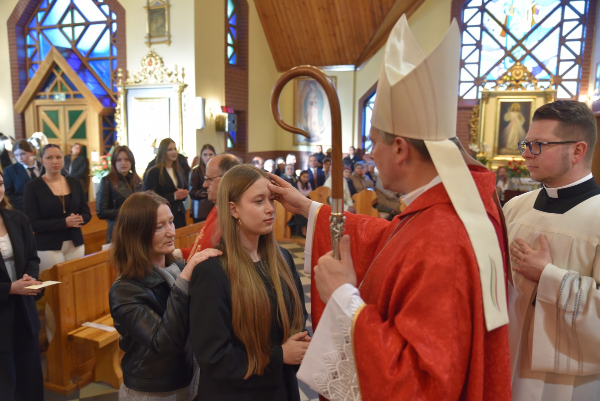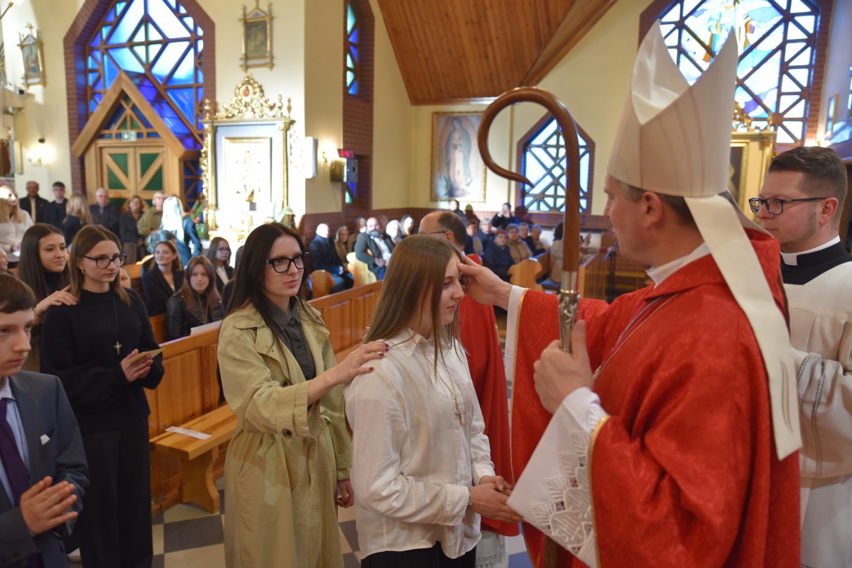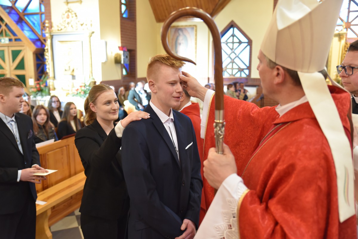 W homilii biskup Piotr zachęcał młodych do życia w bliskiej relacji z Jezusem. Podkreślił, że prawdziwa wiara powinna być widoczna w postawie, wyborach i podejściu do drugiego. Po liturgii słowa i homilii nastąpiło odnowienie przyrzeczeń chrzcielnych, modlitwa nad kandydatami oraz sam obrzęd namaszczenia olejem krzyżma świętego.
