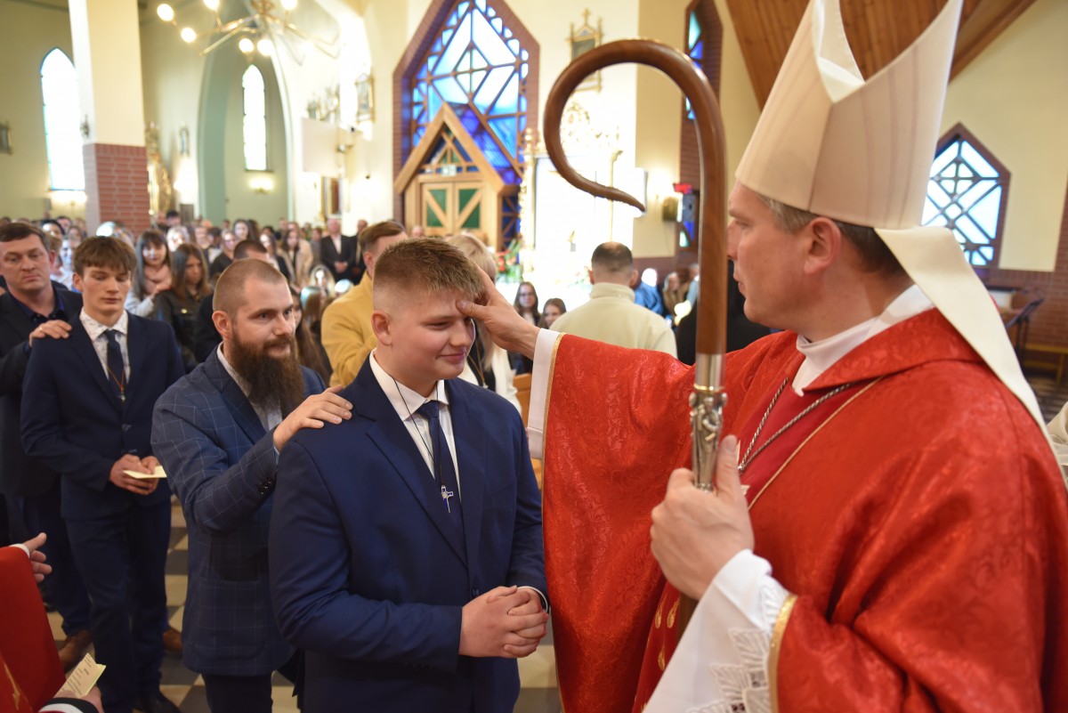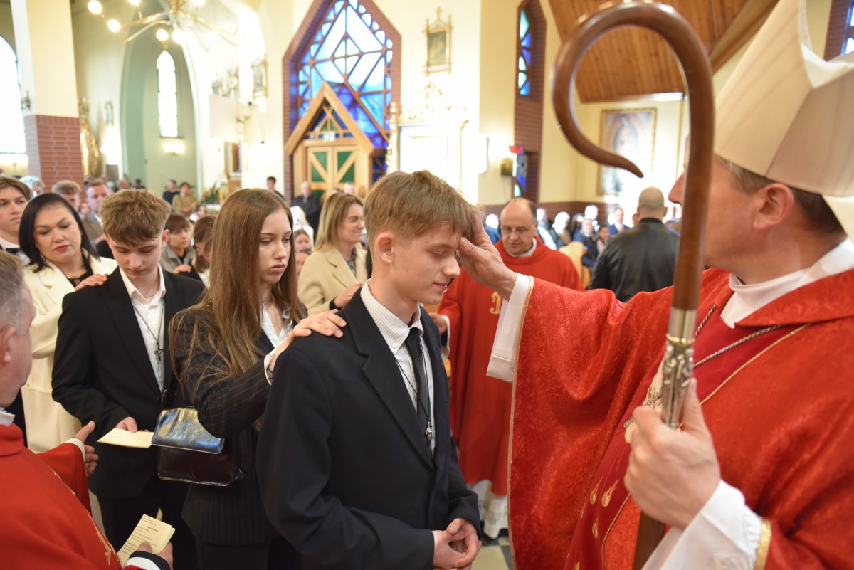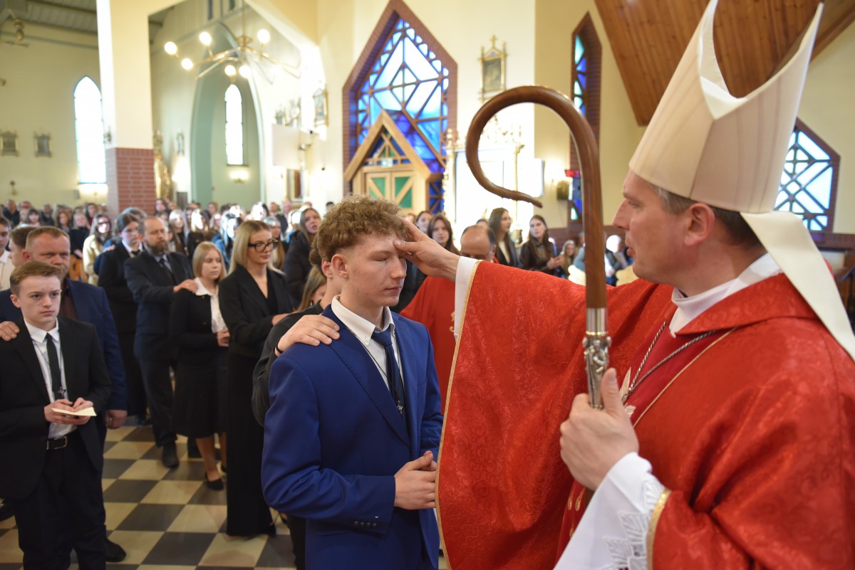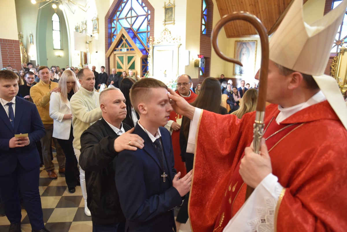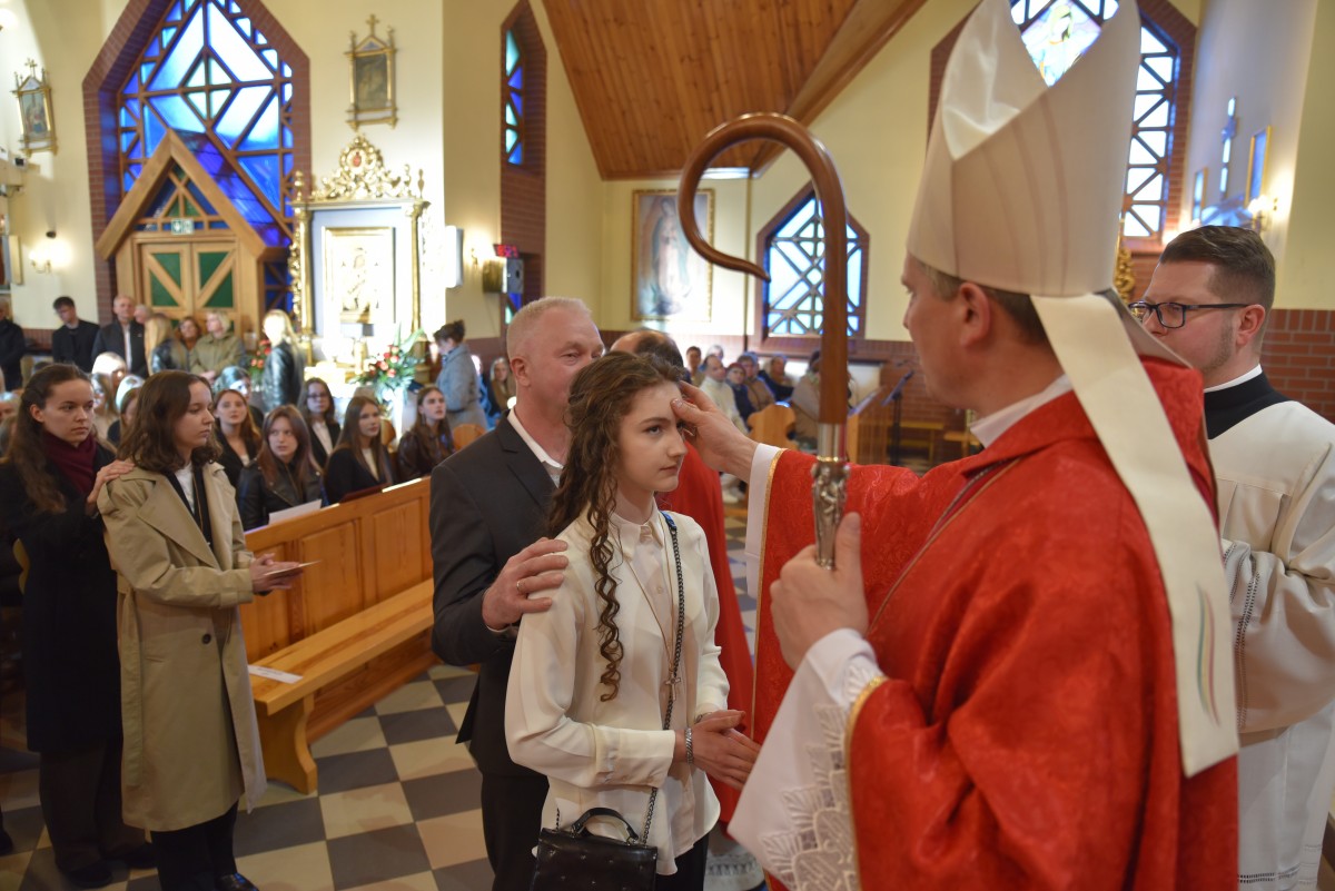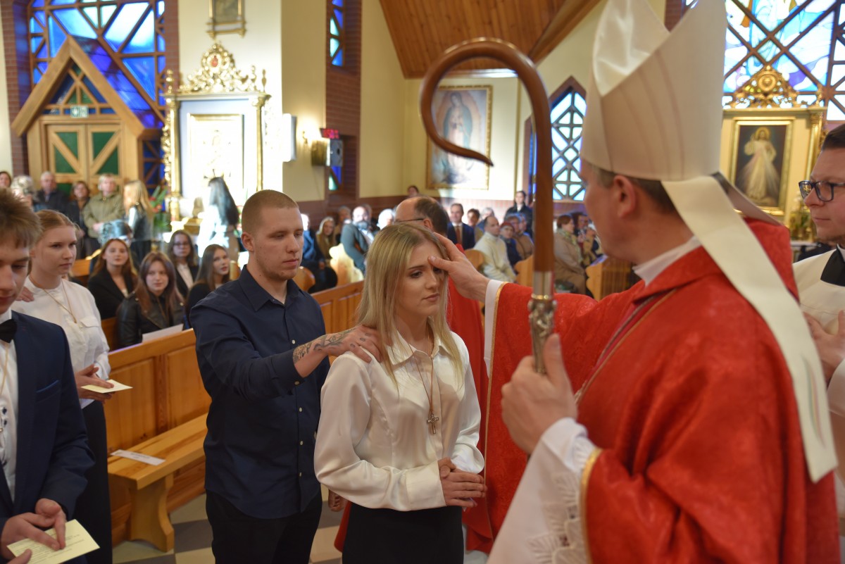 W homilii biskup Piotr zachęcał młodych do życia w bliskiej relacji z Jezusem. Podkreślił, że prawdziwa wiara powinna być widoczna w postawie, wyborach i podejściu do drugiego. Po liturgii słowa i homilii nastąpiło odnowienie przyrzeczeń chrzcielnych, modlitwa nad kandydatami oraz sam obrzęd namaszczenia olejem krzyżma świętego.