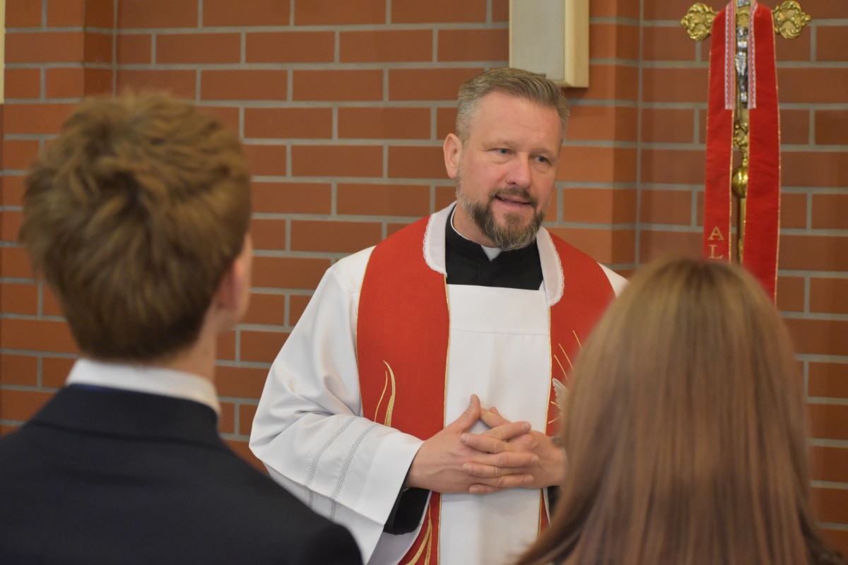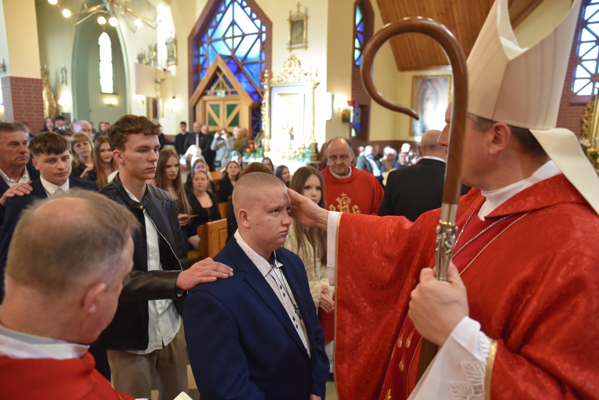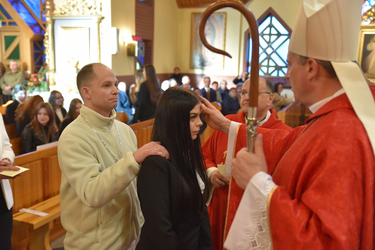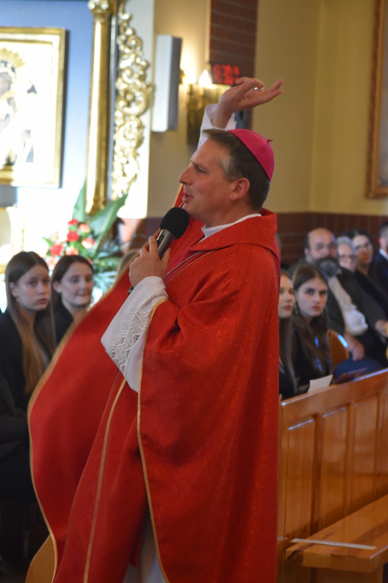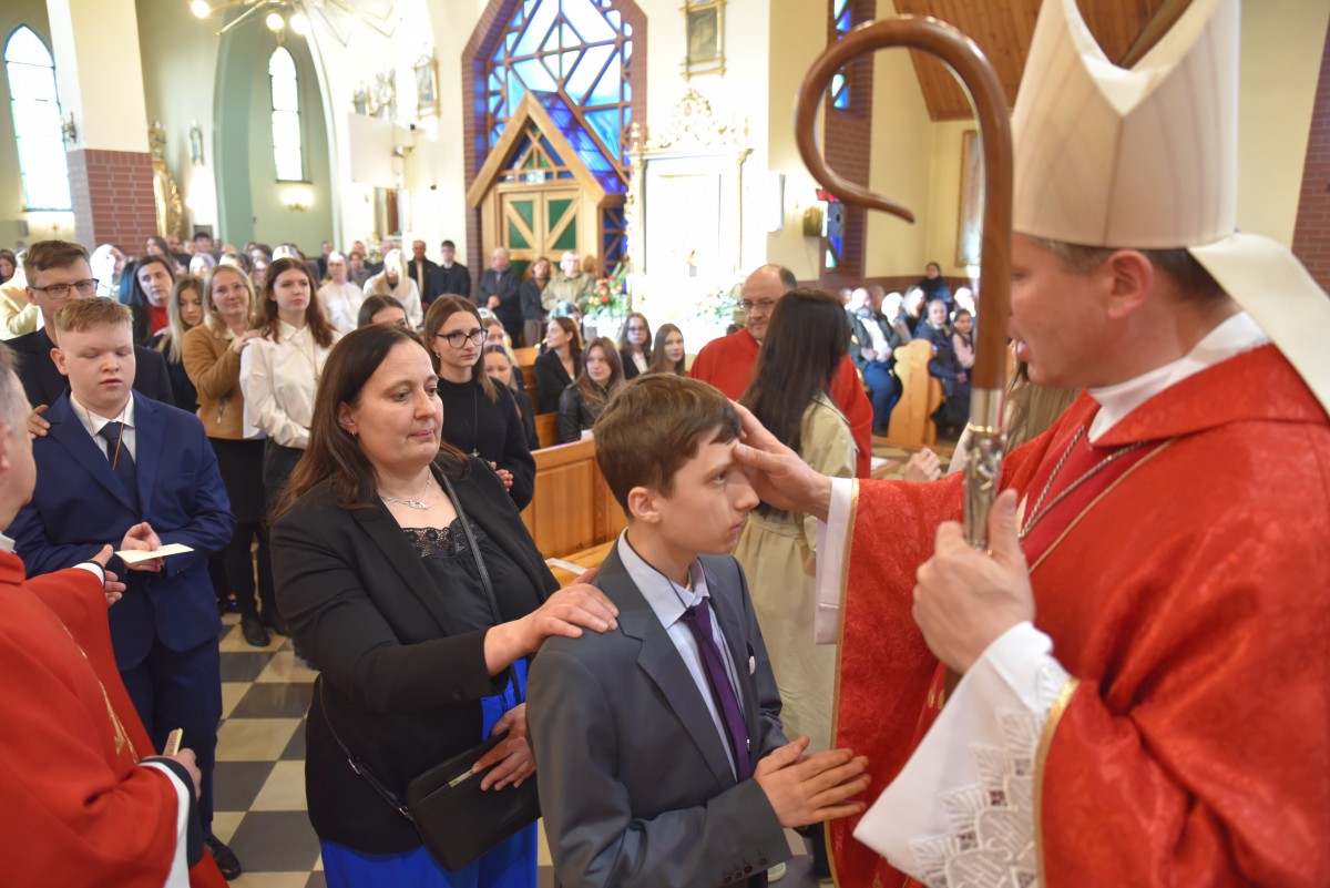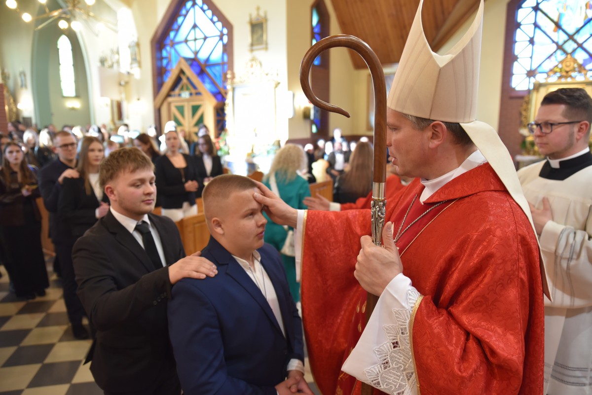 W homilii biskup Piotr zachęcał młodych do życia w bliskiej relacji z Jezusem. Podkreślił, że prawdziwa wiara powinna być widoczna w postawie, wyborach i podejściu do drugiego. Po liturgii słowa i homilii nastąpiło odnowienie przyrzeczeń chrzcielnych, modlitwa nad kandydatami oraz sam obrzęd namaszczenia olejem krzyżma świętego.