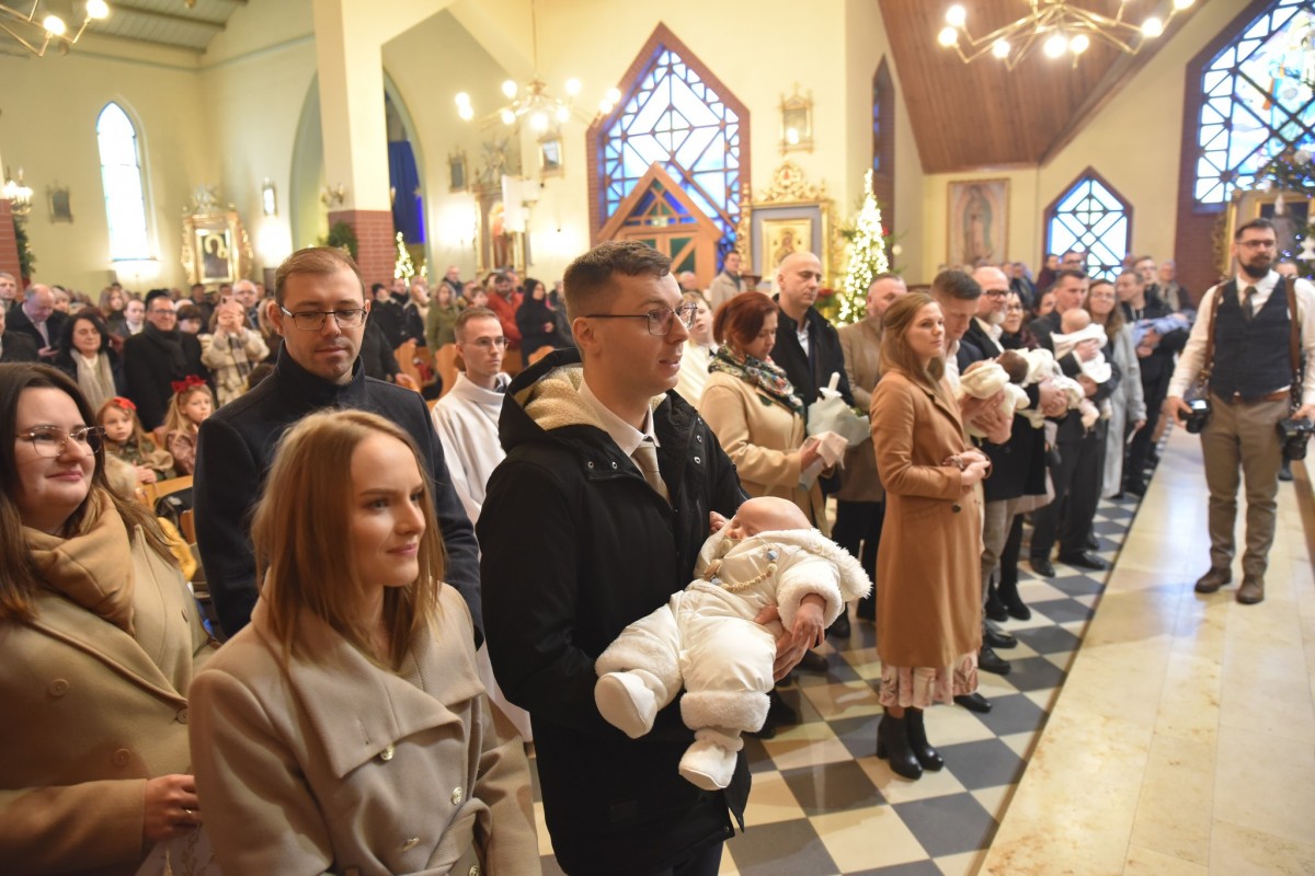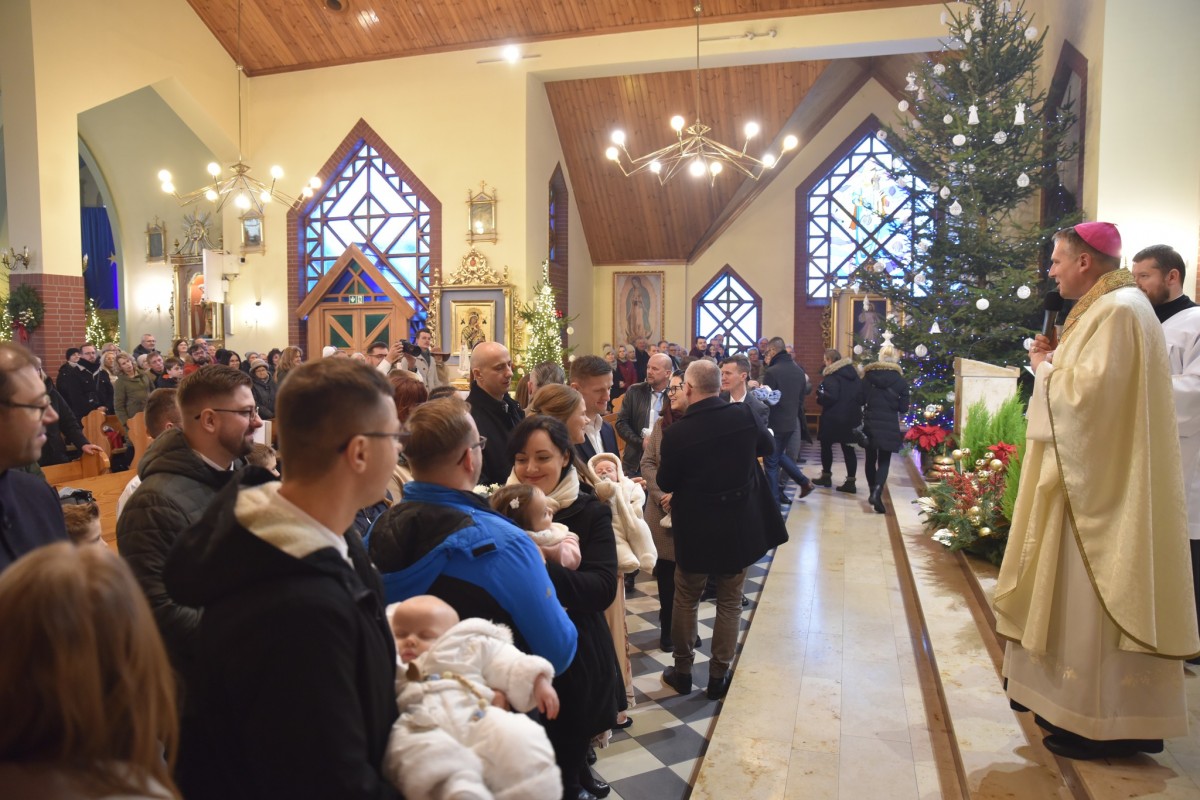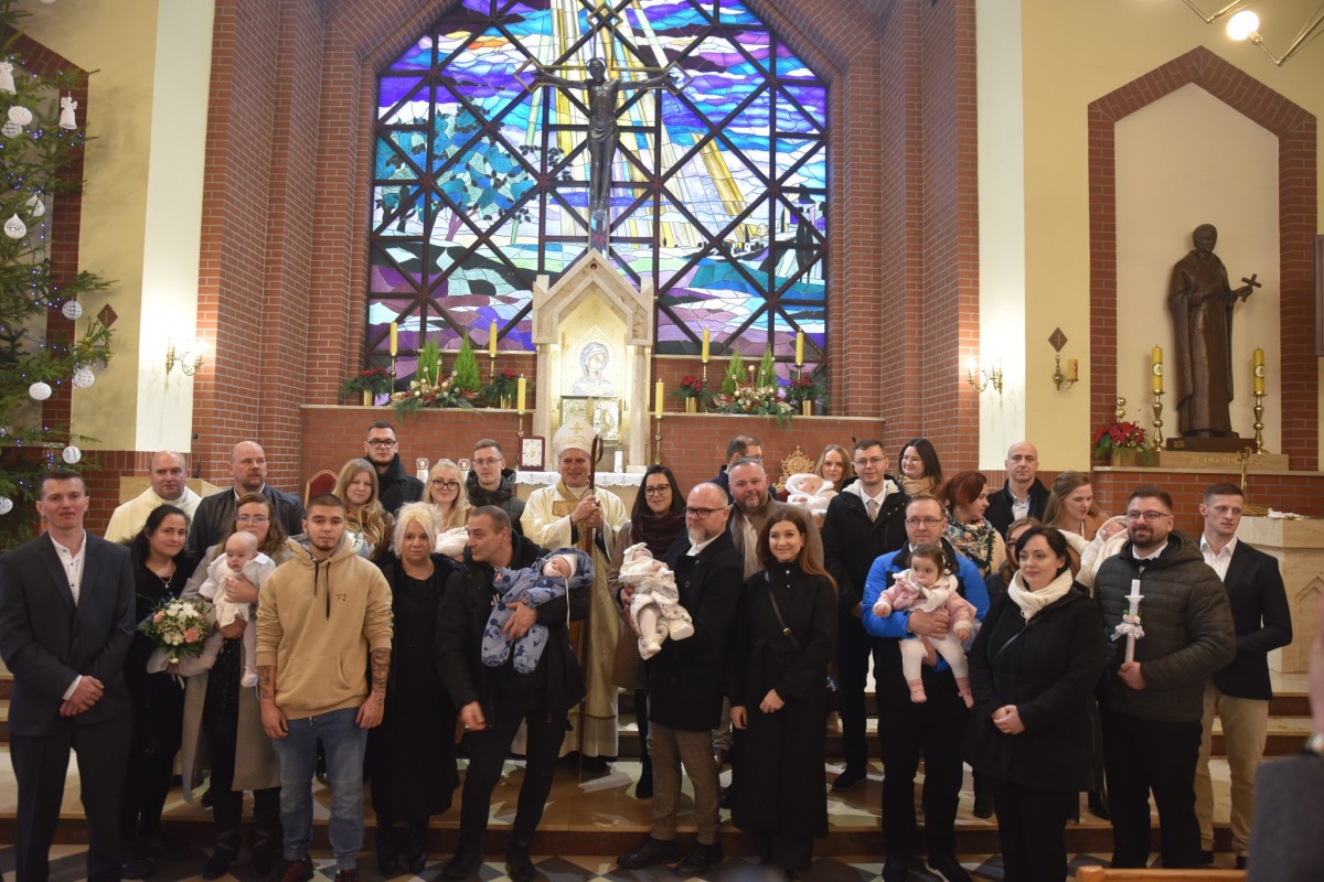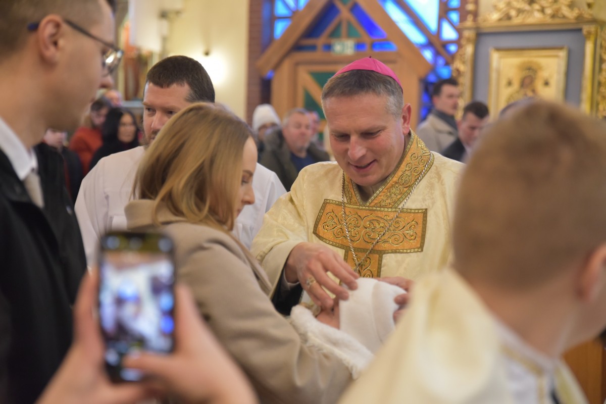 W niedzielę Chrztu Pańskiego, 11 stycznia, gościliśmy w naszej parafii ks. bpa Piotra Przyborka. Podczas uroczystej Eucharystii Ksiądz Biskup poświęcił nową chrzcielnicę, a następnie udzielił sakramentu chrztu świętego siedmiorgu dzieciom.