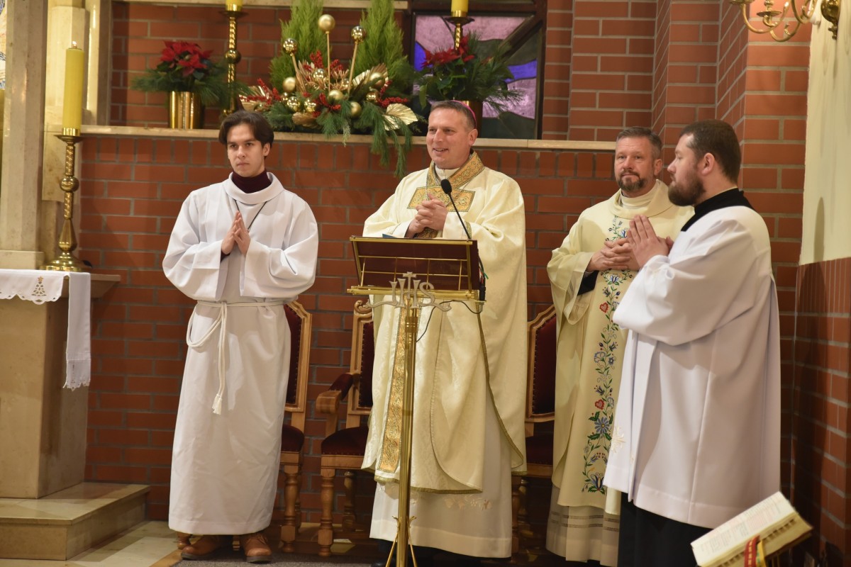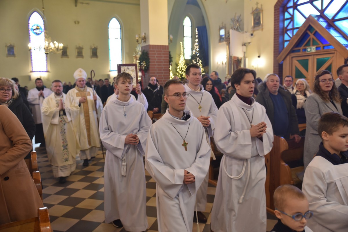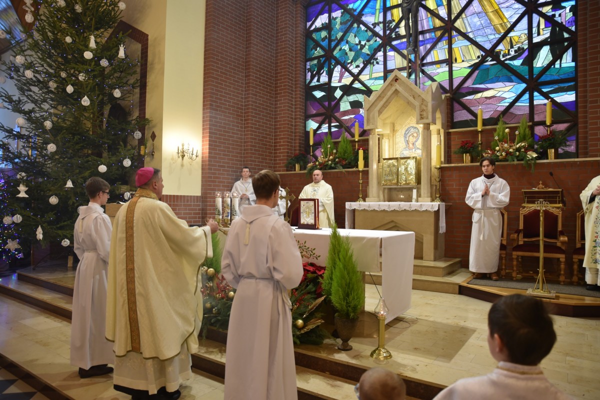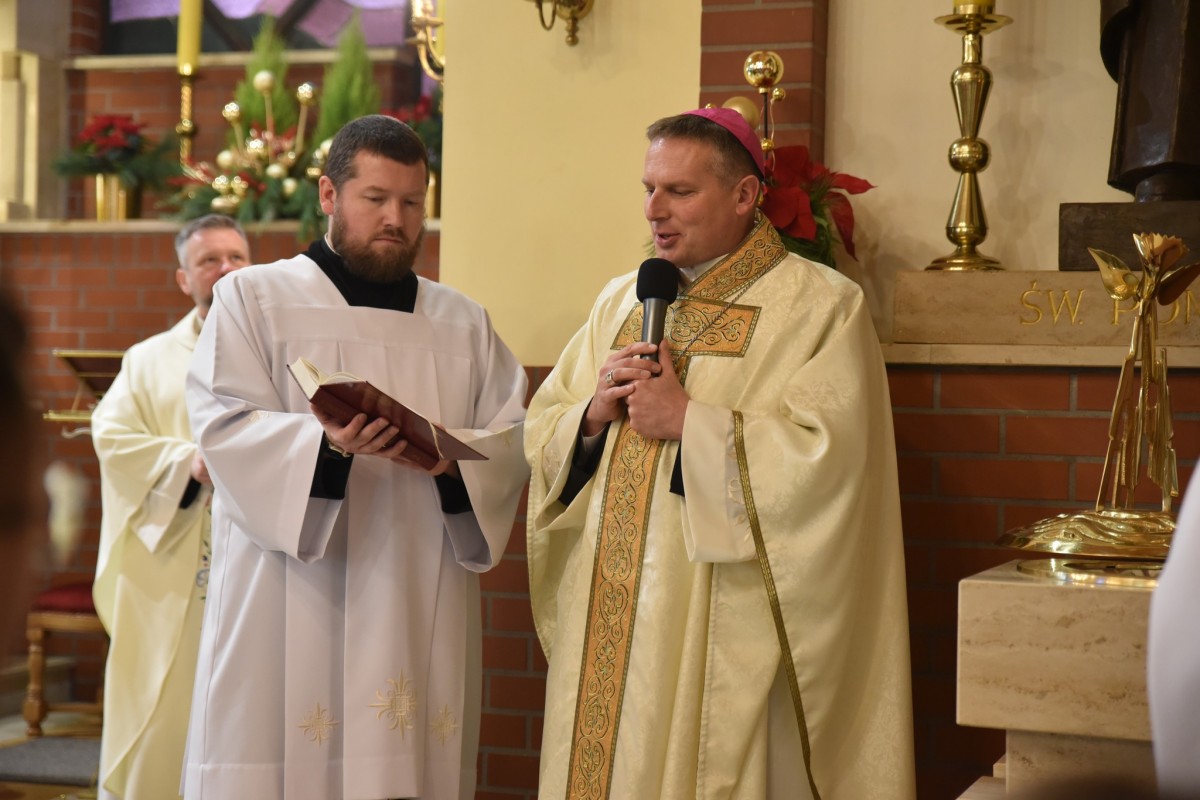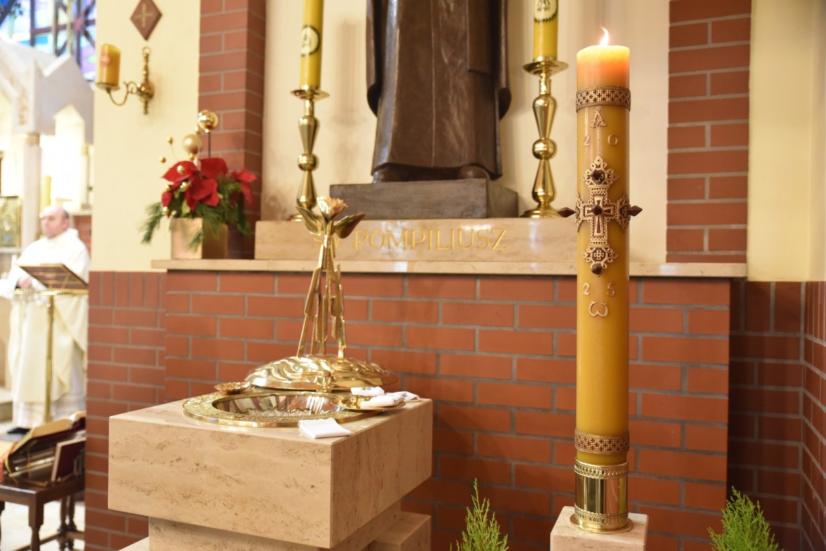 W niedzielę Chrztu Pańskiego, 11 stycznia, gościliśmy w naszej parafii ks. bpa Piotra Przyborka. Podczas uroczystej Eucharystii Ksiądz Biskup poświęcił nową chrzcielnicę, a następnie udzielił sakramentu chrztu świętego siedmiorgu dzieciom.